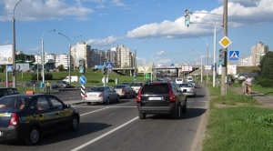 Конструкция расположена возле авторынка, по направлению в город. Рядом находится ТРЦ «DiaMond city», АЗС «Белоруснефть», автосалон «Митсубиси».